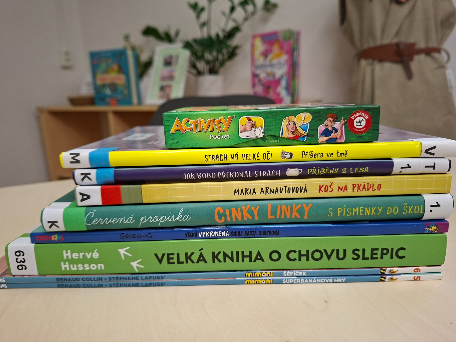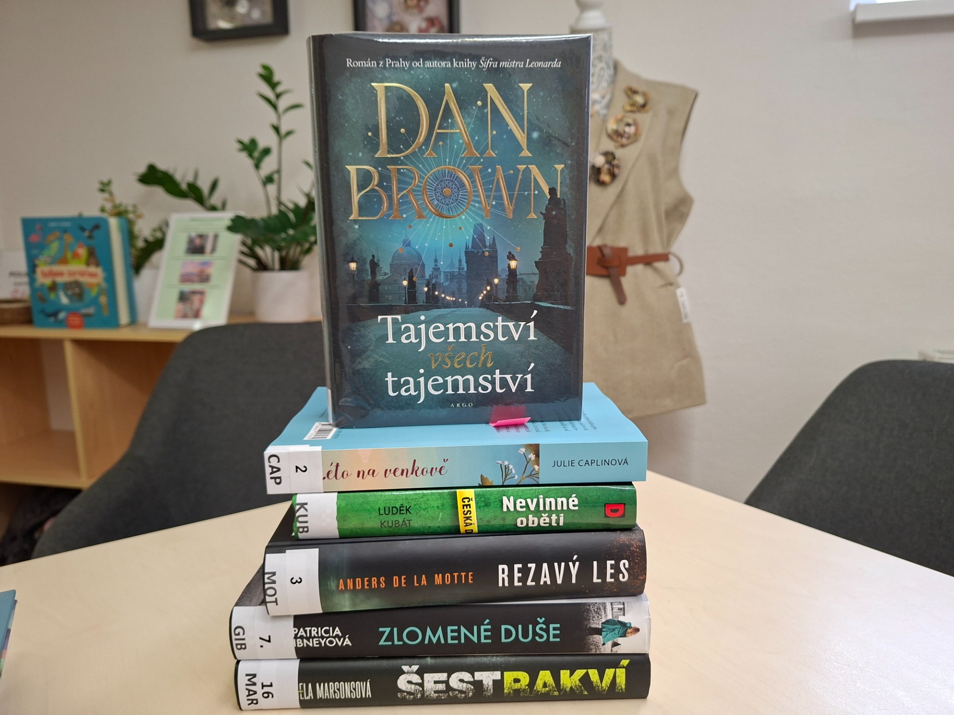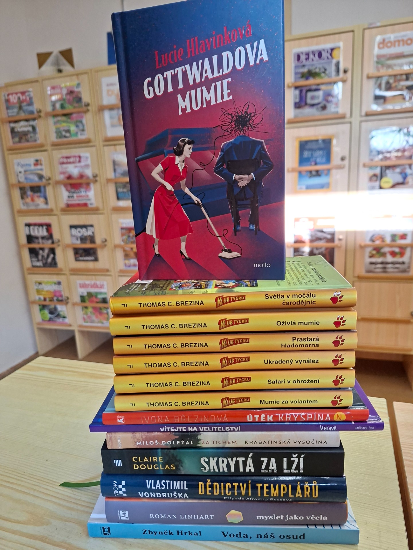 Čekají na vás opět další novinky v knihovně. Knihy s obrázky pro nejmenší, komiksy, thrillery, odborné knihy o vodě a chovu slepic, o včelařství, další díly Klubu tygrů, Vlastimil Vondruška, Caplinová a netrpělivě očekávaný Dan Brown a Lucie Hlavinková.